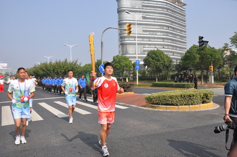 张祝强同学通过前期报名、素质选拔等环节,成功成为火炬传递手。在传递现场,他单膝跪地虔诚地接过上一棒火炬火种,在规定的步程中,展示了永利大学生的青春风采。