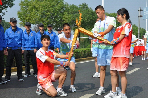 张祝强同学通过前期报名、素质选拔等环节,成功成为火炬传递手。在传递现场,他单膝跪地虔诚地接过上一棒火炬火种,在规定的步程中,展示了永利大学生的青春风采。